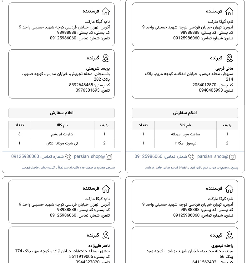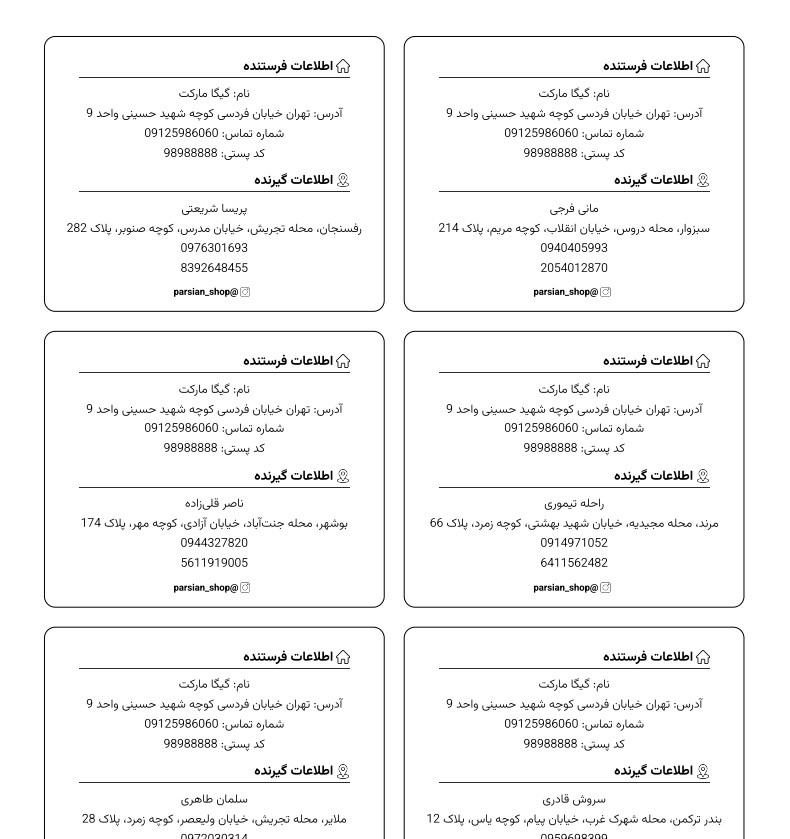 وقتی مشتری در دایرکت اینستاگرام یا واتساپ آدرس خود را میفرستد، معمولاً به این شکل است: